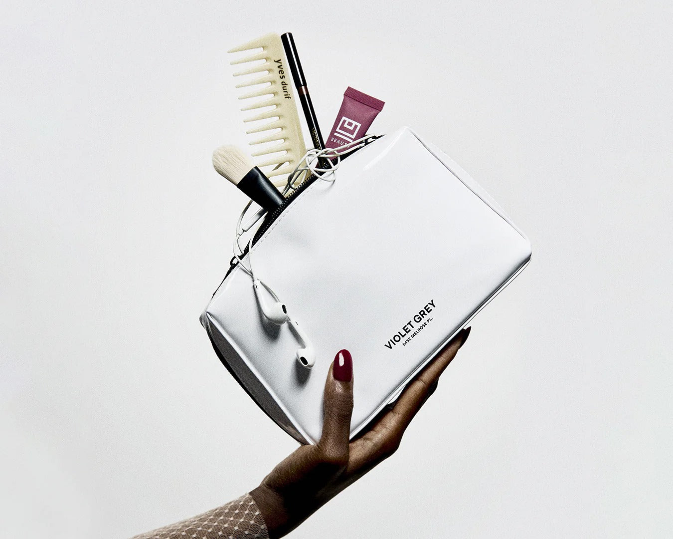 We'll slip a white VIOLET GREY makeup bag into every order over $250, while supplies last.
