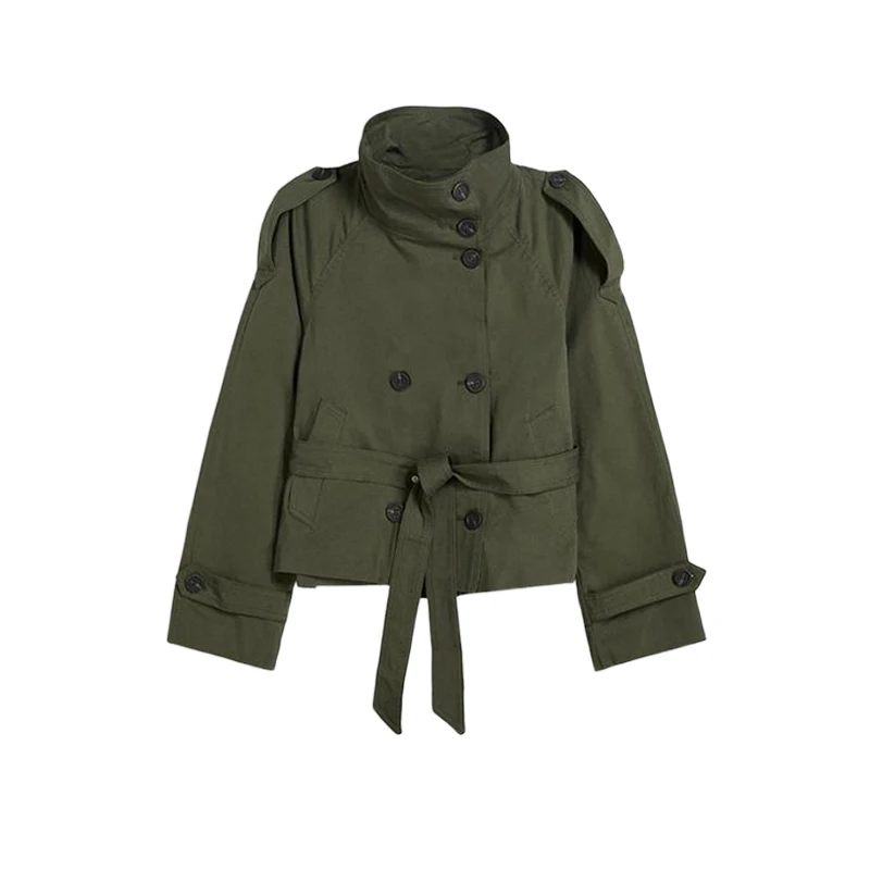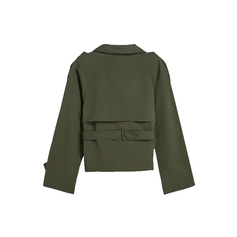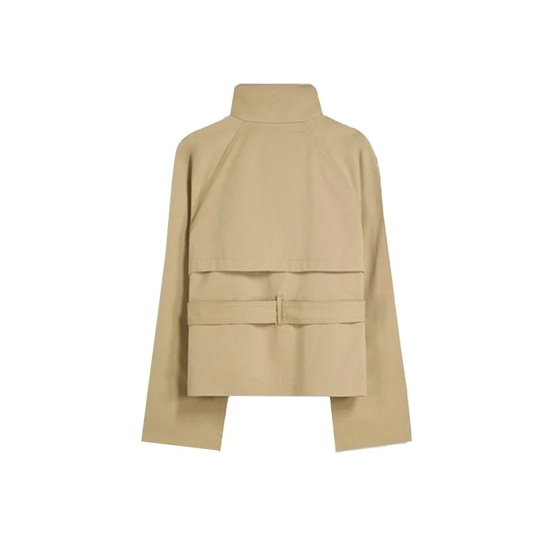 Casual Stand Collar Women Jacket with Belt Elegant New Long Sleeve Single Breasted Coats 2025 Autumn Lady Outerwear High Street